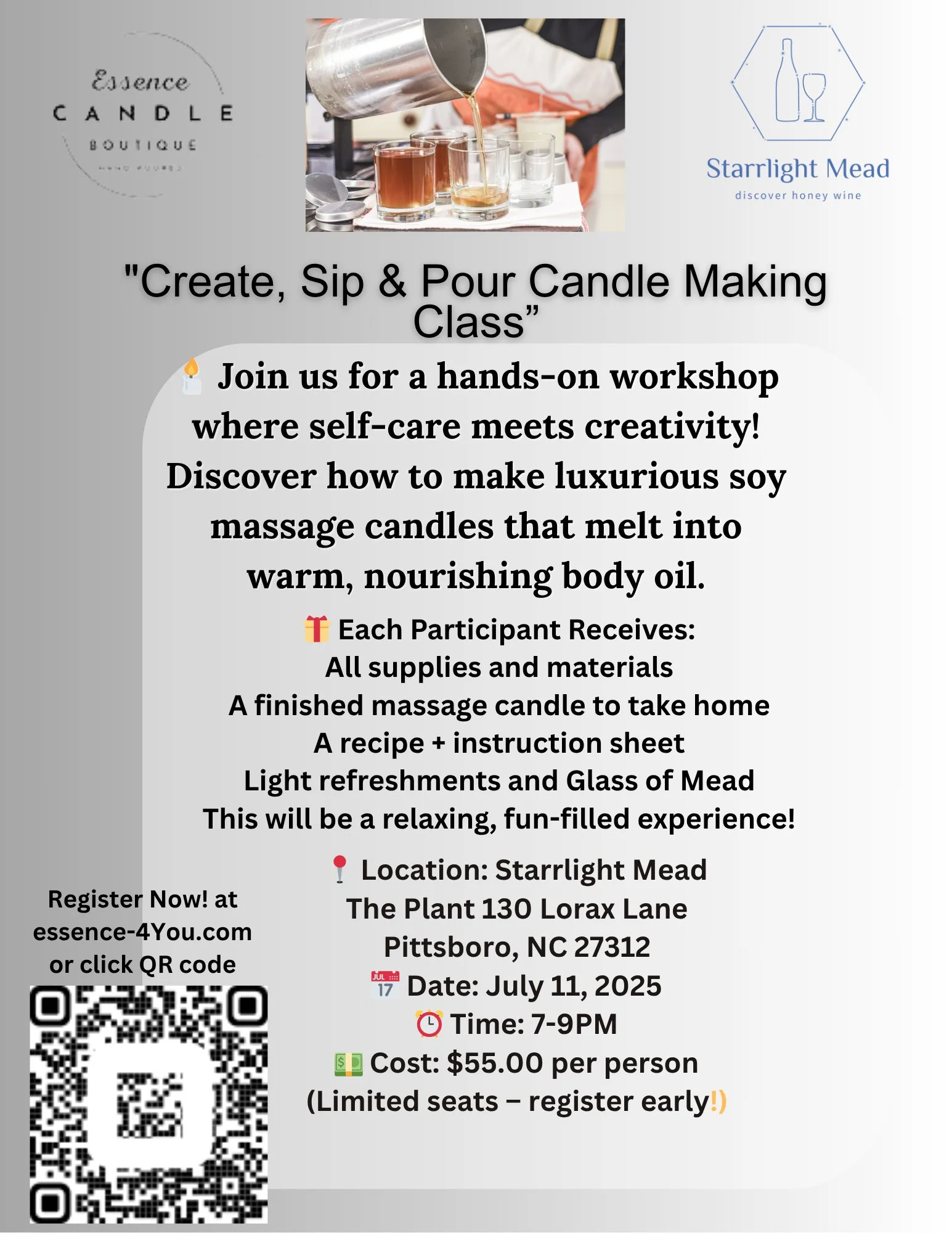 Learn the Art of Soy Massage Candle Making! Create. Pour. Relax.